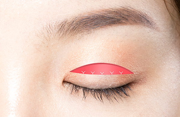 쌍꺼풀 라인을 따라 피부를 절개한 뒤 눈의 상태에 따라 피부, 근육, 지방, 결합 조직을 적당량 제거한 후 상안검거근과 피부를 붙여서 절개부위를 봉합합니다.
