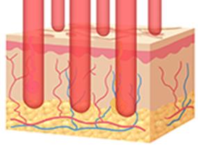 바늘이 피부안으로 들어가서 피부 진피층에 콜라겐 합성을 촉지하는 방식입니다.